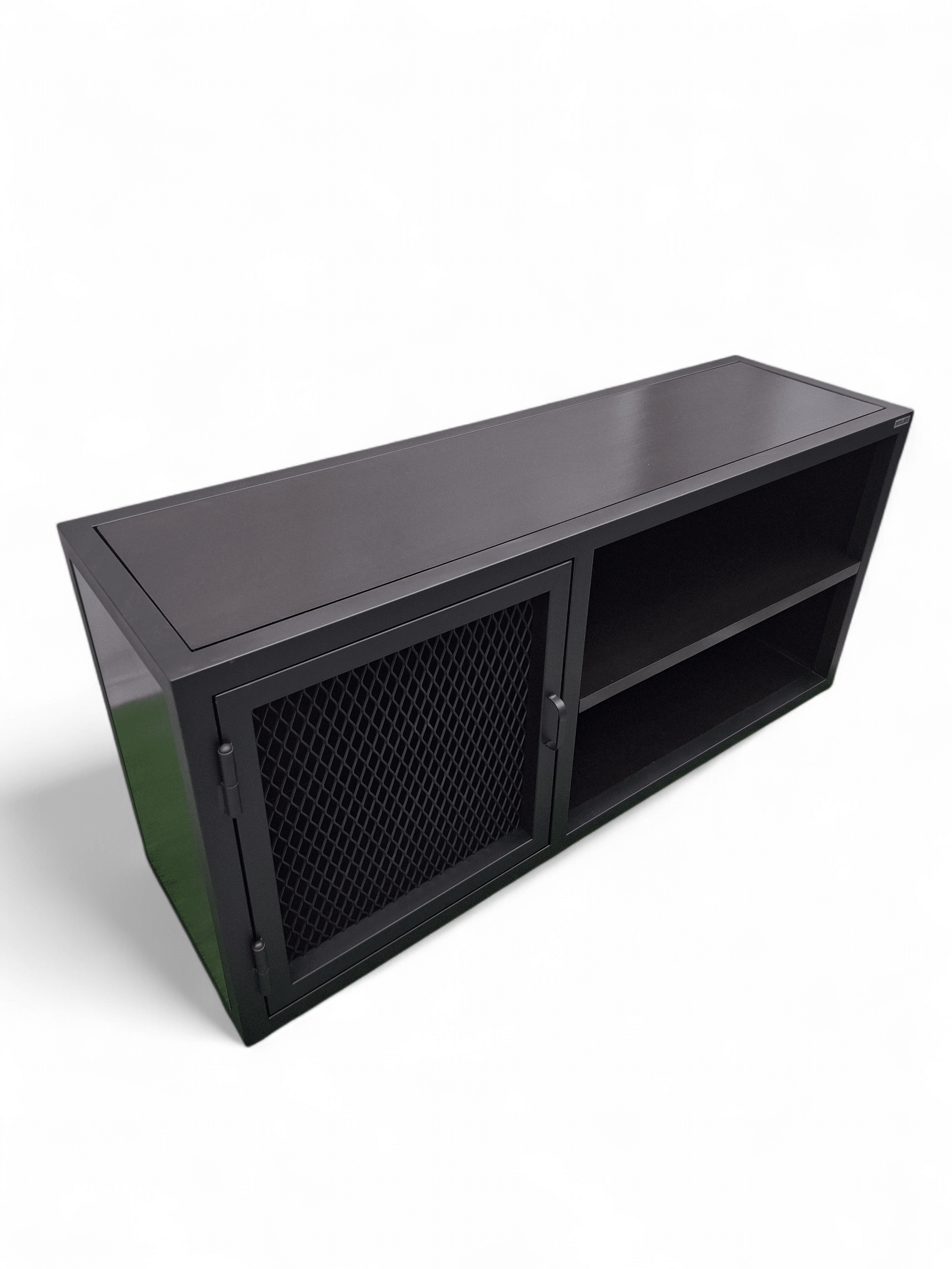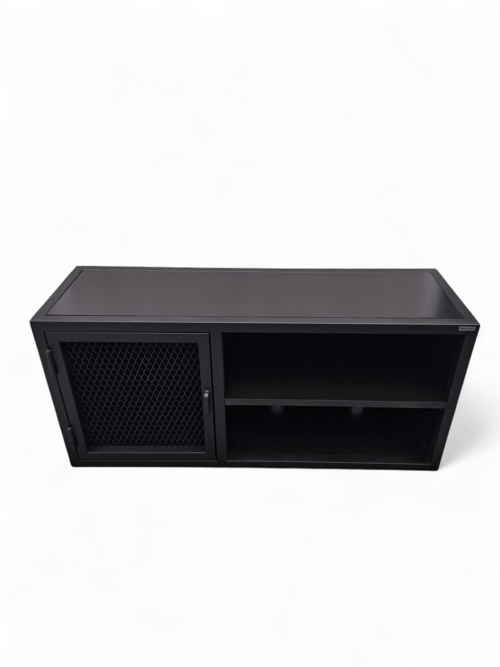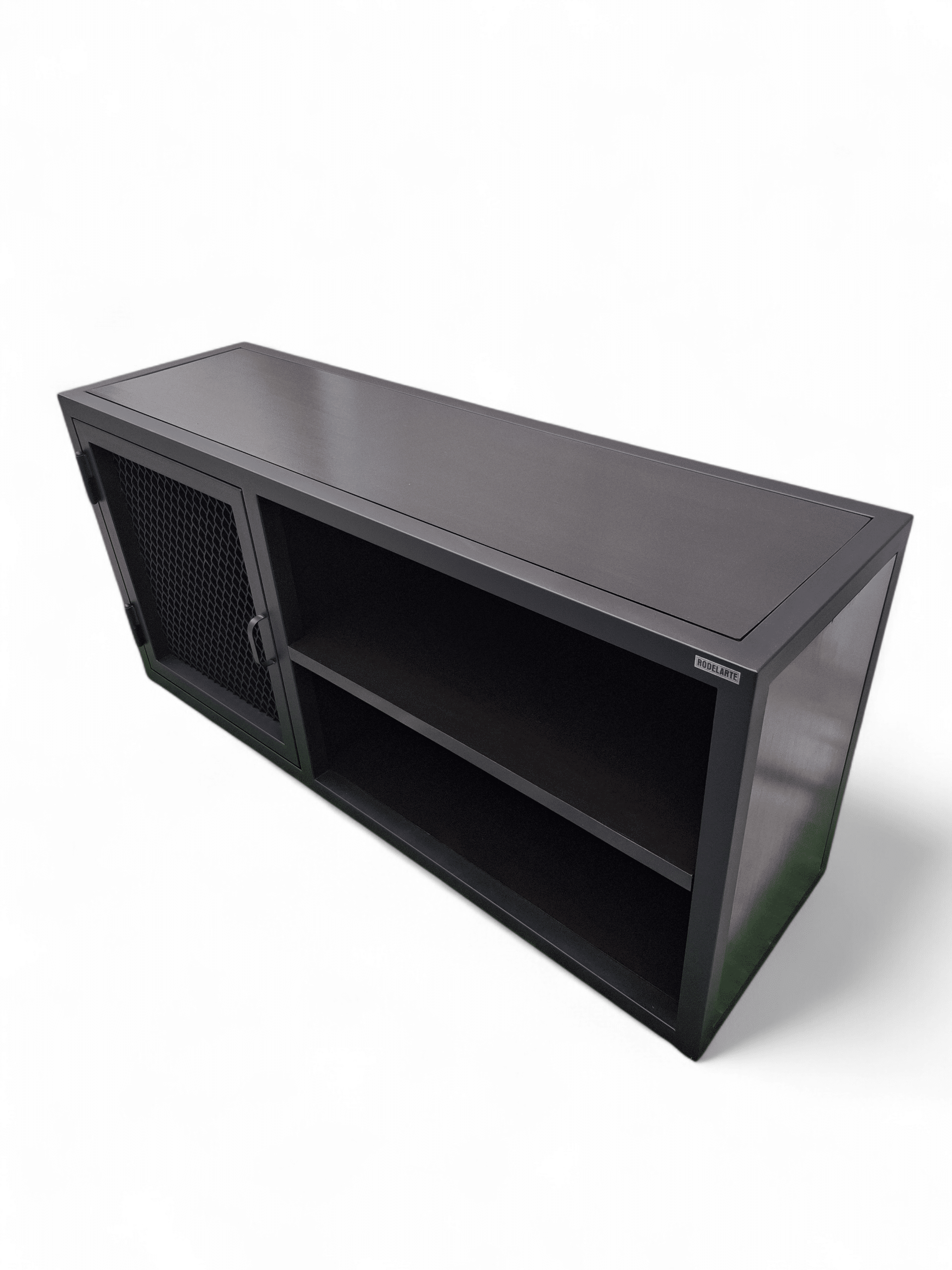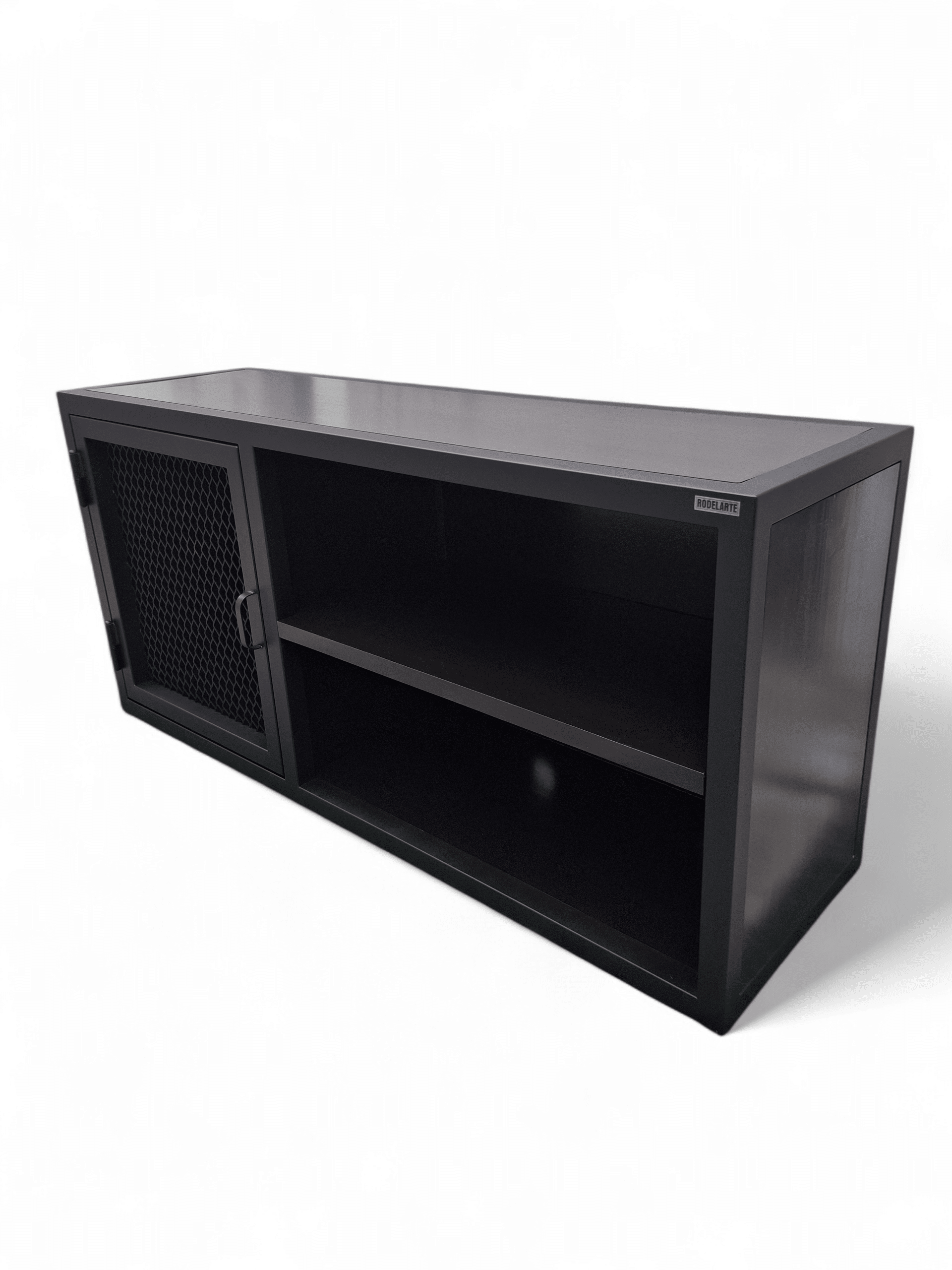 Descubre el elegante Rack TV, una pieza de diseño sofisticado ideal para tu sala de estar. Este mueble combina el robusto encanto del hierro con estanterías funcionales. Su acabado en color negro otorga un aspecto moderno y versátil que complementa cualquier decoración. Con un compartimento cerrado por una puerta de malla, ofrece un espacio seguro para tus dispositivos electrónicos, mientras que las estanterías abiertas permiten fácil acceso a libros o decoraciones. El Rack TV no solo es estéticamente atractivo sino también altamente práctico. Su estructura sólida garantiza durabilidad y estabilidad, convirtiéndolo en la elección perfecta para optimizar el uso del espacio. Añade un toque de distinción a tu hogar con este mueble único y funcional que fusiona estilo y practicidad inigualables.
